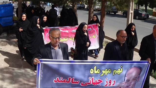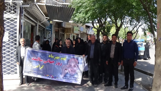 اکرم شاهین فر کارشناس سالمندان شبکه بهداشت و درمان شهرستان رشتخوار گفت:به مناسبت هفته سالمند مراسم راهپیمایی با حضور سالمندان و امام جمعه شهرستان رشتخوار و سایر مسئولین شهرستانی از محل ساختمان شبکه بهداشت رشتخوار تا مزار شهدای گمنام برگزار شد. وی افزود در پایان هدایایی به قید قرعه به شرکت کنندگان اهداء شد.