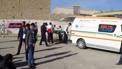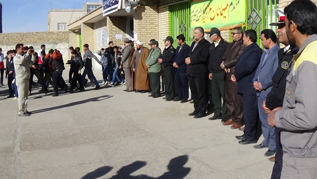 مهندس محمد محسنی مسئول واحد کاهش خطر بلایا و حوادث مرکز بهداشت شهرستان رشتخوارگفت: هجدهمین مانور زلزله و ایمنی در مدارس باحضور تیم واکنش سریع مرکز بهداشت و اورژانس 115 ،پلیس و سایر تیم های امدادی در ساعت 9 صبح مورخ 15/09/95 در محل دبیرستان شهید آبافت شهر رشتخوار با شعار مدرسه ایمن، جامعه تاب آور برگزار گردید. در این مانور ، امکانات عملیاتی سازمانها و هماهنگی های بین بخشی سازمانها در معرض نمایش قرار گرفت. تیم واکنش سریع مرکز بهداشت با بررسی آب و مواد غذایی موجود و وضعیت دفع فاضلاب و زباله در منطقه و گزارش لحظه به لحظه بیماریها از تیم های درمانی، و تیم های اورژانس با اعزام بیماران و مصدومین به نزدیکترین پایگاه درمانی وضعیت سلامت منطقه را پشتیبانی نمودند.