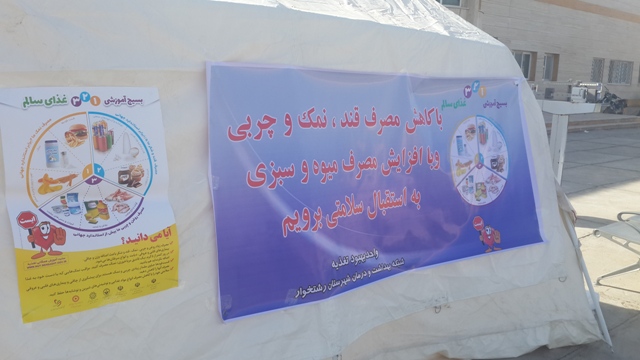 بتول ذاکری مسئول واحد بهبود تغذیه مرکز بهداشت شهرستان رشتخوار گفت: در راستای اجرای برنامه های بسیج ملی آموزش همگانی تغذیه سالم با هدف کاهش مصرف قند و نمک و چربی و افزایش مصرف میوه و سبزی از 29آذر لغایت 30دی ماه سال جاری ، پخش پیامهای بهداشتی ازطریق برپایی چادرسلامت و اندازه گیری فشارخون و تعیین نمایه توده بدنی با همکاری واحد بهبود تغذیه و پیشگیری و مبارزه با بیماریهای رشتخوار برگزار گردید. و آموزش های لازم داده شد.