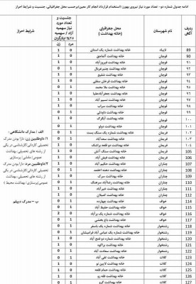 پیرو اطلاعیه دانشگاه علوم پزشکی مشهد ؛ شبکه بهداشت و درمان رشتخوار، در نظر دارد در خصوص پذیرش بهورز با شرایط بومی گزینی روستای مورد نیاز شهرستان، به صورت قرارداد انجام کار معین ، در خانه های بهداشت روستاهای ذکر شده ؛از بین افراد واجد شرایط اقدام نماید.